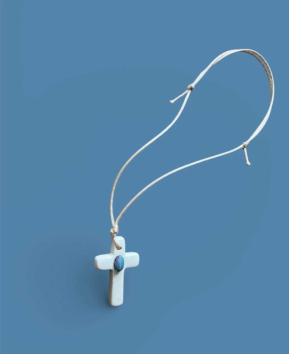 Petite croix en céramique faite à la main dans l'atelier de Dobrunia Design à Nice.